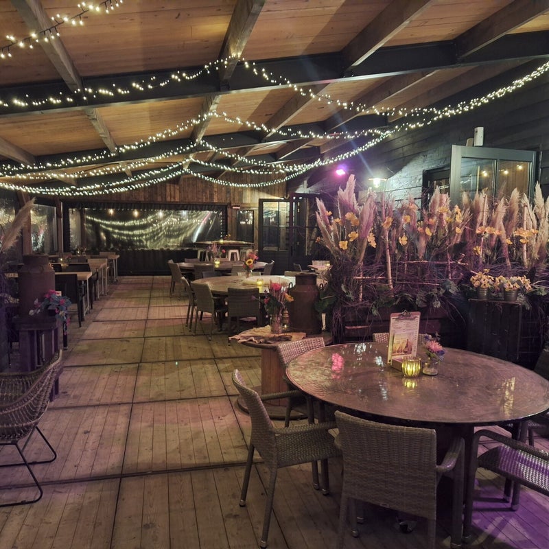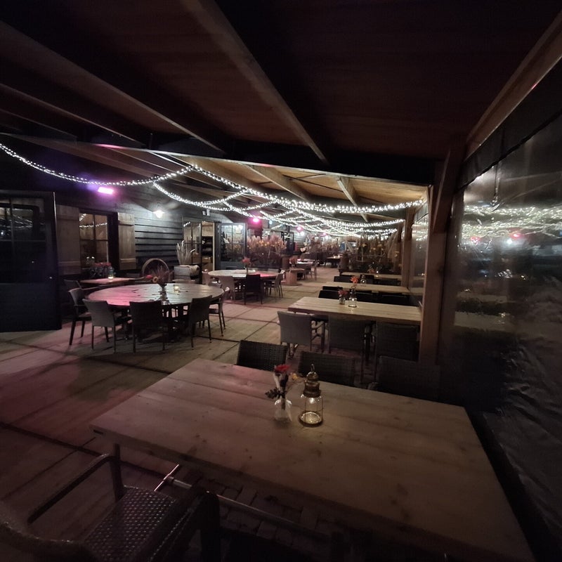 Aan diverse zalen op de boerderij zit onze sfeervolle serre (40*7 meter) gekoppeld. Heerlijk om in de zomer onder te zitten (de wanden kunnen open). In de winter kan de serre volledig dicht en is deze te verwarmen. Hierdoor kunnen we het hele jaar door de "terras beleving" bieden. Let op ! De serre kunnen we verwarmen maar blijft een serre. Het kan dus 1 of 2 graden kouder zijn dan in de zalen.