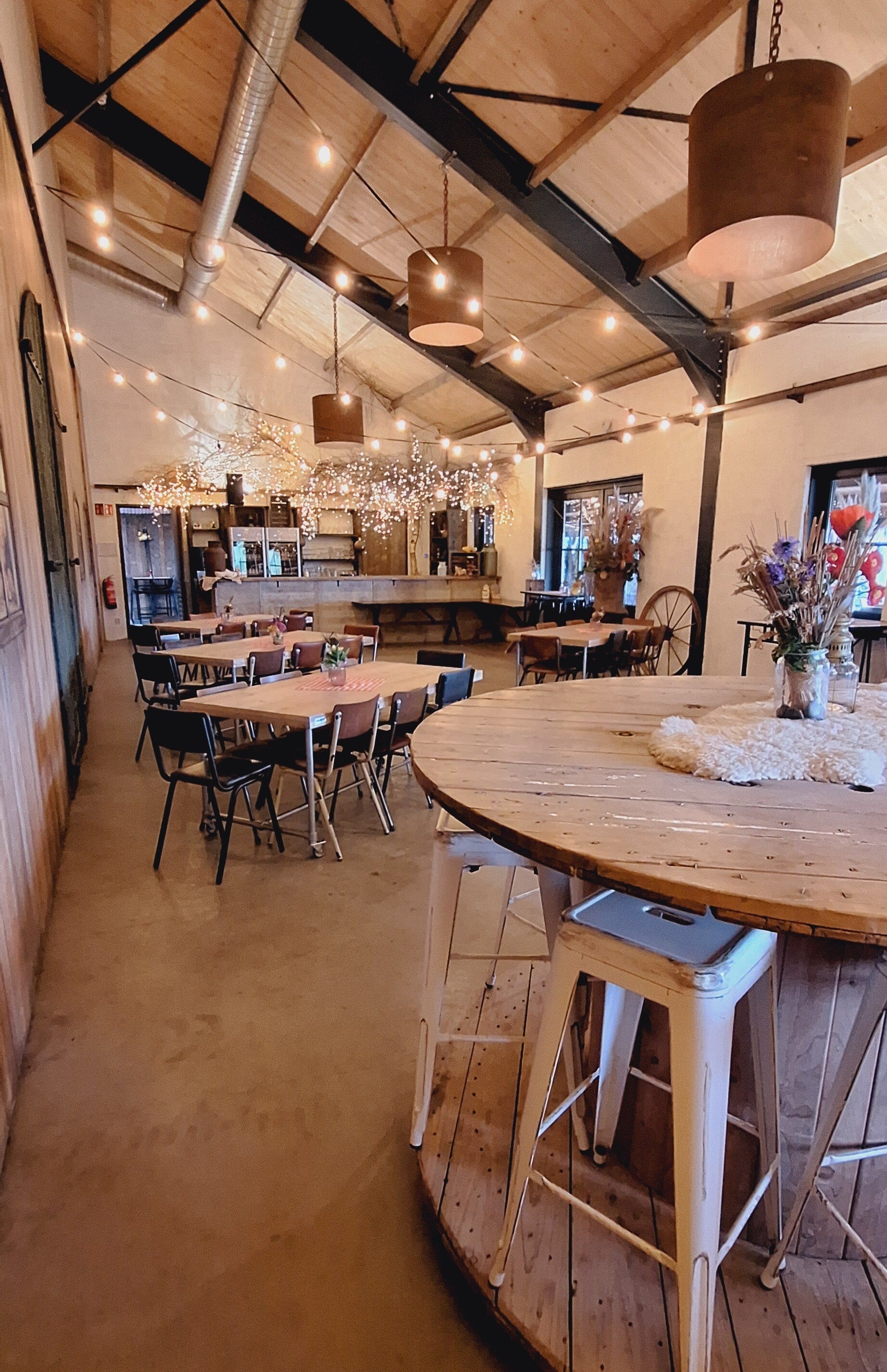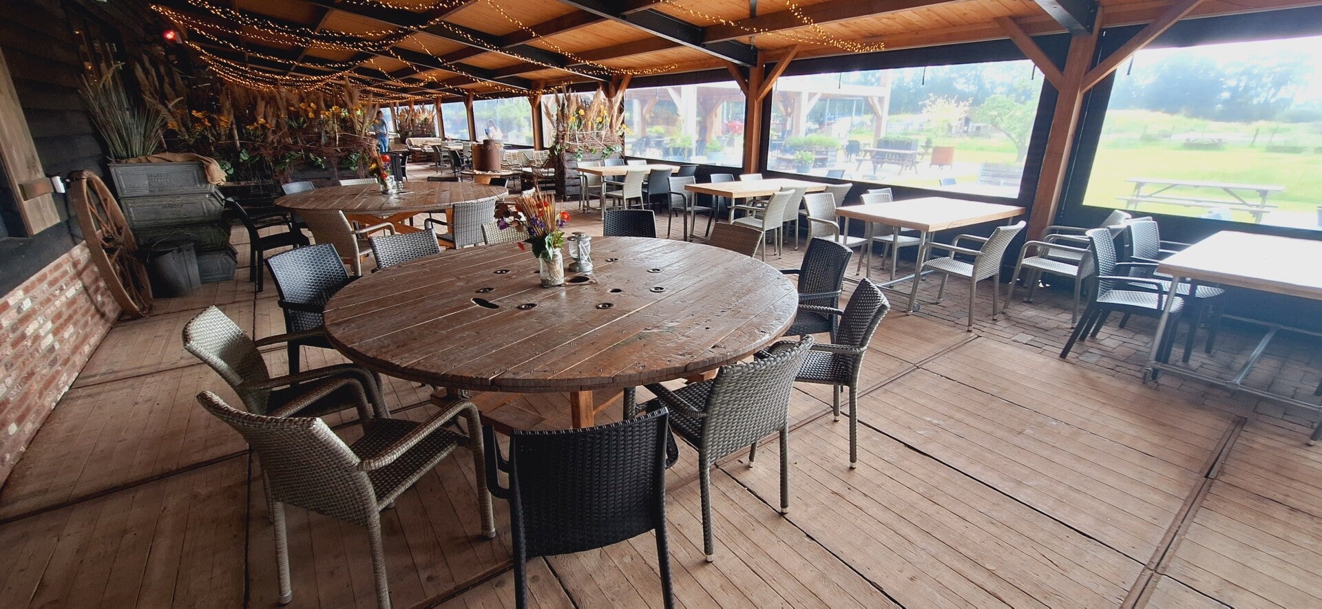 De zaal bevat een barretje en aan de zaal zit een ongeveer even grote serre met terras.