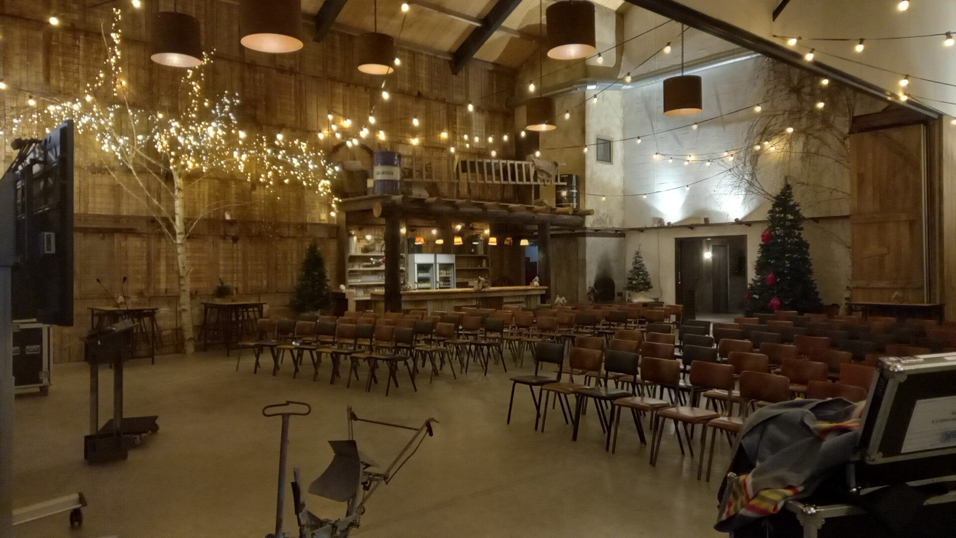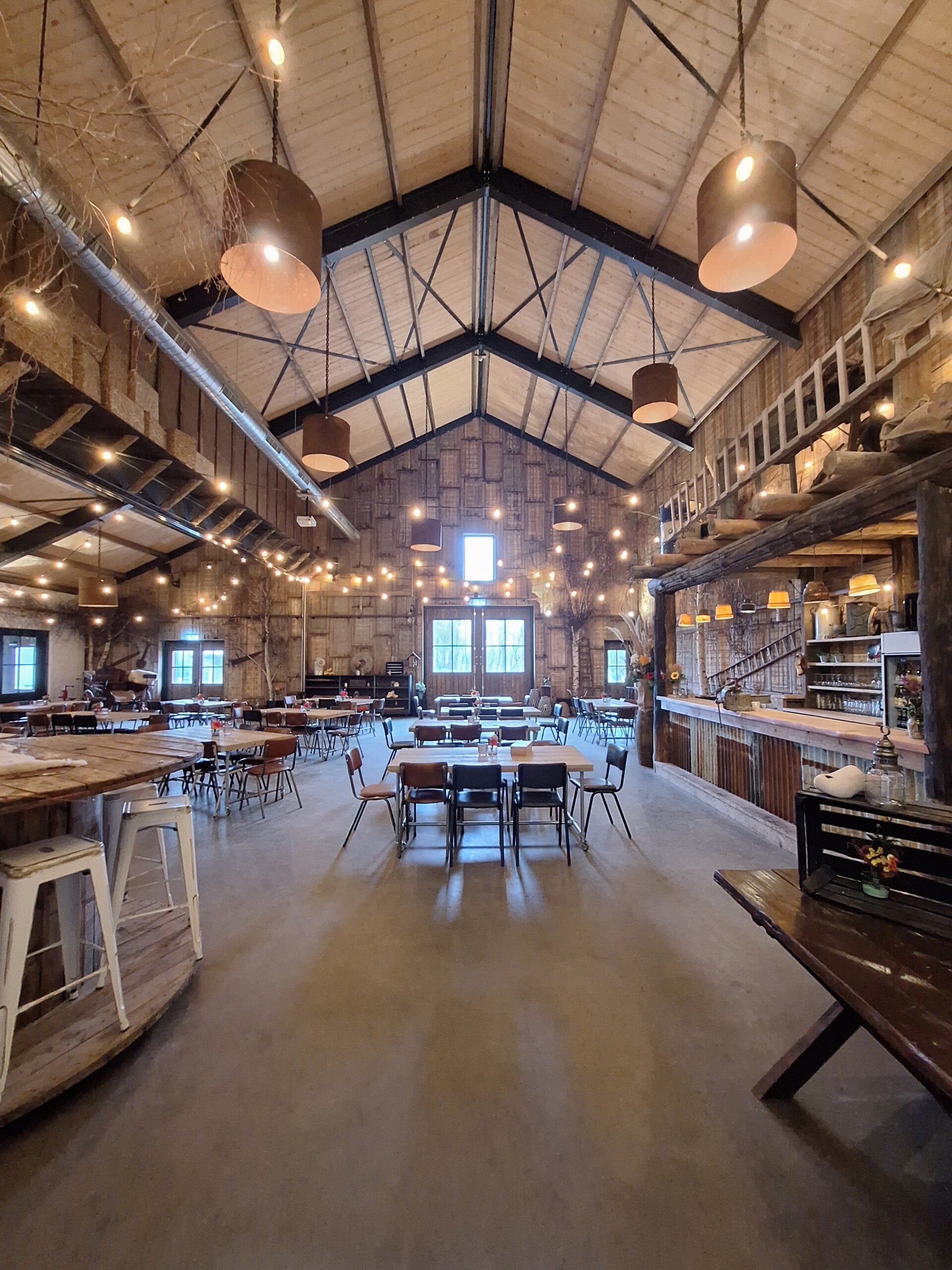 Zaal 't Schop totaal is een van de 10 zalen op onze locatie. Al onze ruimtes zijn voorzien van vloerverwarming/vloerkoeling en klimaatsysteem. De zaal is 280m2 en beschikt over grote deuren zodat je zelfs trekker binnen kan rijden. Aan de zaal zit een overdekt terras en serre vast. Dus ook bij lekker weer kan je naar buiten met uitzicht over de weilanden. De afmetingen zijn 16*17=272m2.